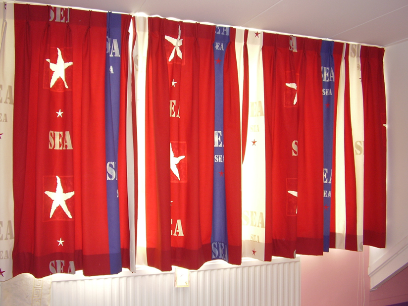 De confectie van allerlei gordijnen, ook met de inslagringen en vouwgordijnen.